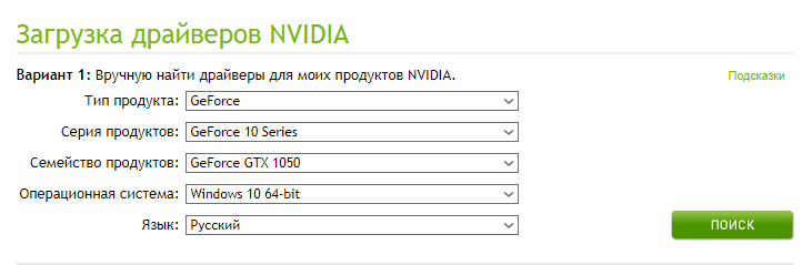 - Загрузить файл с последней версией драйвера с официального сайта. Достаточно перейти на сайт Nvidia или Radeon, выбрать модель видеокарты и скачать подходящий файл под ОС. Останется только его запустить.