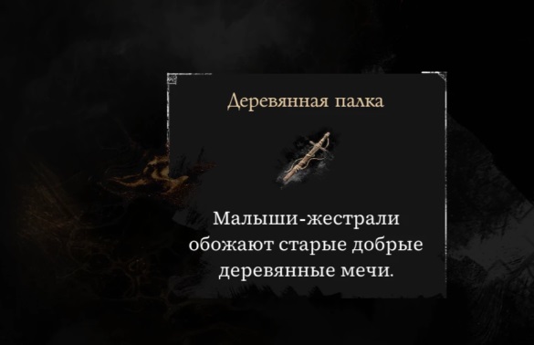 В описании предмета будет указано, что местная малышня обожает забавляться с деревяными мечами. Хорошо… что же делать с этой деревянной палочкой дальше?