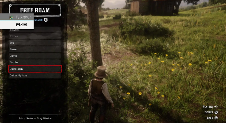 Первым делом нужно закончить вступление – это часть сюжета, занимающая всего 30-40 минут времени. Это важно, так как до момента завершения данного раздела сюжета, игрок не имеет доступа к свободному перемещению по миру. Как только у игрока появляется свобода выбора, следует нажать «влево» и перейти в раздел для выполнения заданий. Здесь нужно выбрать Quick Join.