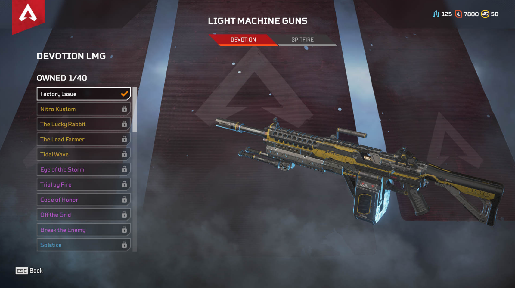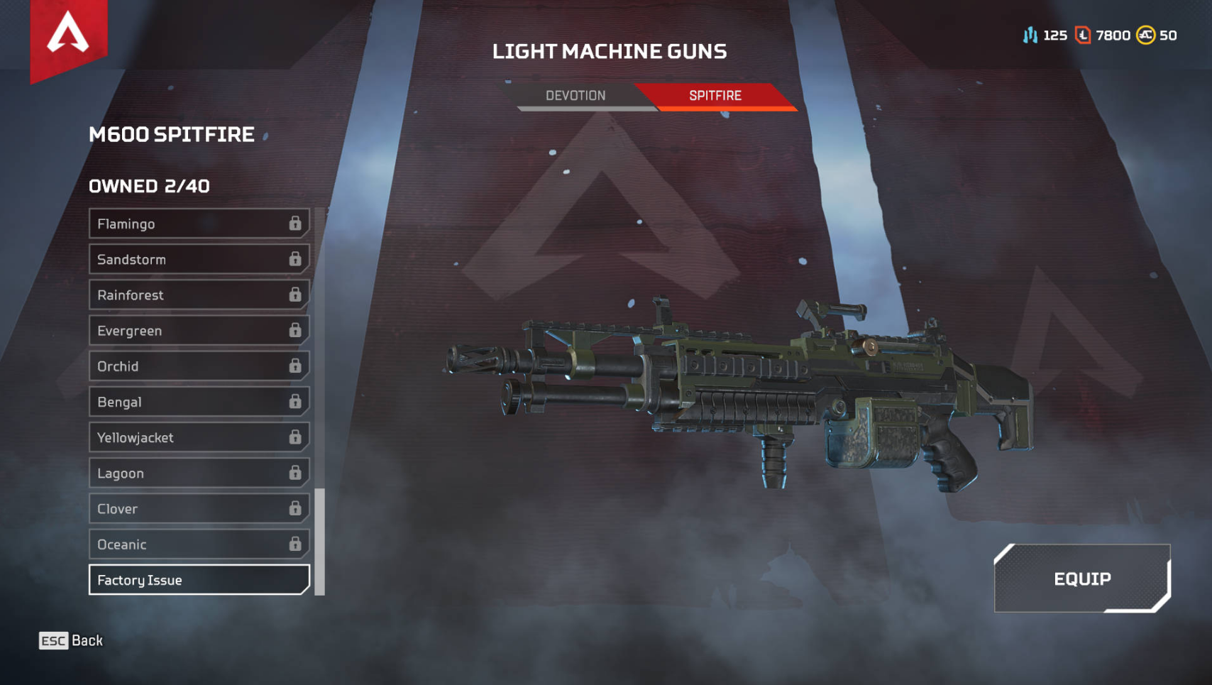 - M600 «Спитфайр» отличается устойчивость огня. Первые выстрелы создают наибольшую отдачу, но затем контролировать оружие уже довольно легко. Попадания в туловище снимают 20 единиц жизней, а в голову – 40. Благодаря легко контролируемому спрею, можно разложить целый отряд в хорошей экипировке за один магазин. Несмотря на то, что Devotion’s LMG причиняет больше урона цели, она использует относительно редкие энергетические боеприпасы и требует использование золотого турбокомпрессора. M600 Spitfire использует тяжёлые боеприпасы, поэтому является универсальным оружием в этой категории;