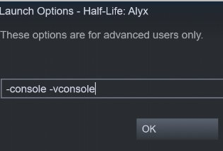 Теперь должна открыться консоль на экране компьютера (не в окне VR-гарнитуры). Придется снять устройство с головы. Чтобы во время бездействия не убили, лучше поставить игру на паузу.