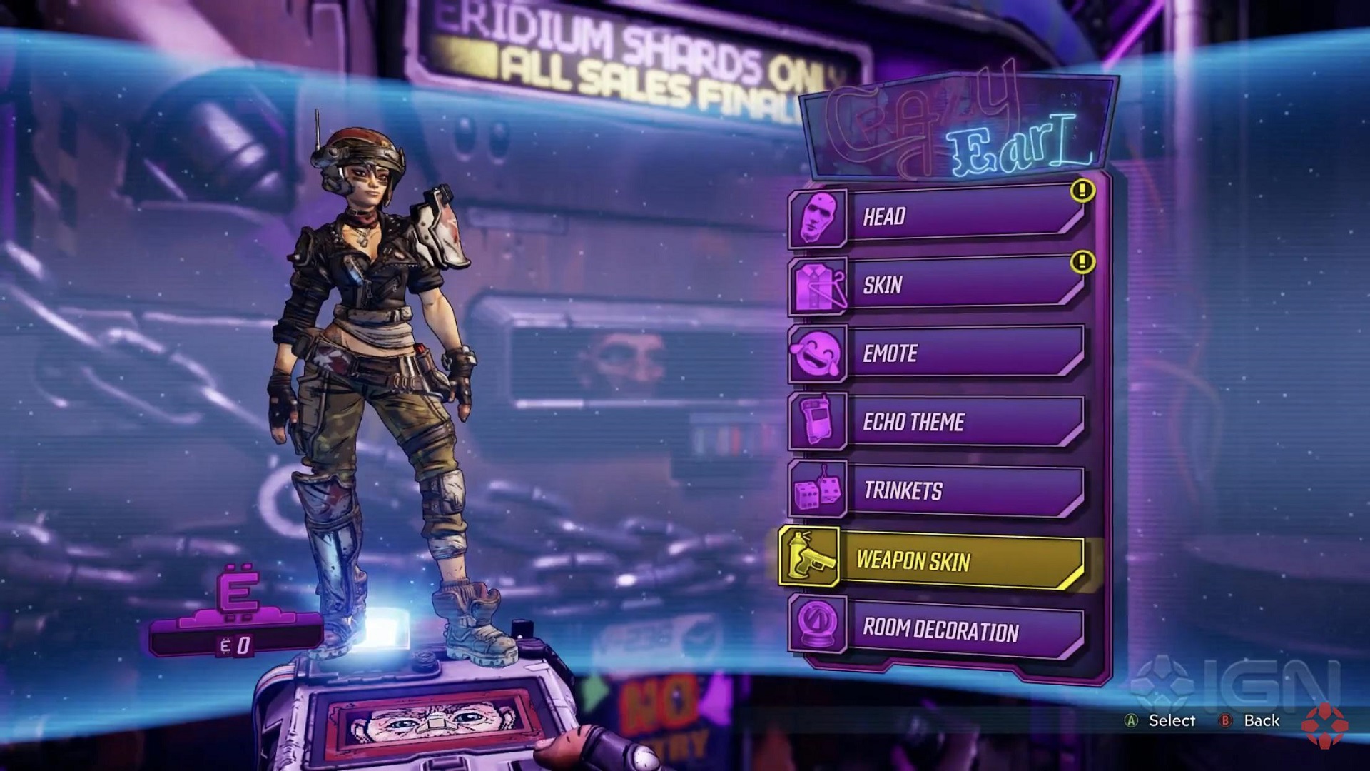 Итак, в первую очередь эридий можно потратить на предметы кастомизации. Они очень разнообразны, от украшений для хранилища до скинов. С технической точки зрения, покупка таких предметов самая ценная, поскольку оружие можно добыть и другими способами.