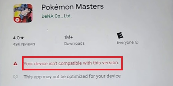 Самая очевидная причина ошибки «Приложение несовместимо с вашим устройством» в Pokemon Masters — DeNA не тестировали свою игру с вашим устройством. Понимаете, в продаже находится невероятно огромное количество мобильных устройств с самыми разными характеристиками — разработчики могли не включить ваш аппарат в список совместимых устройств.
