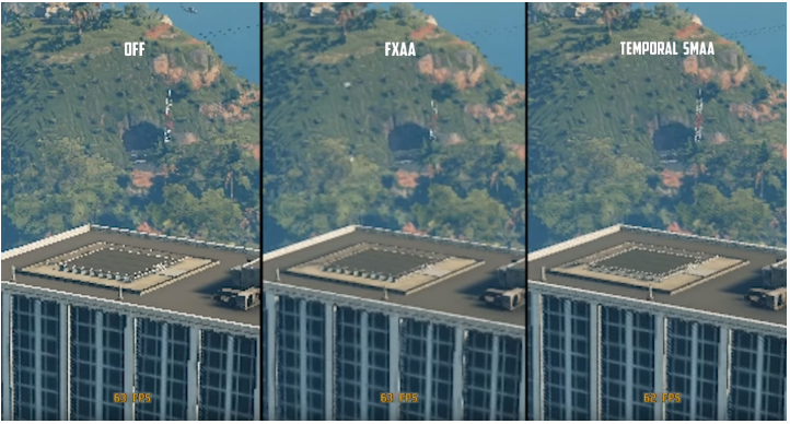 - Сглаживание можно установить в одно из трёх позиций: Off, FXAA, Temporal SMAA. С активной функцией сглаживания картинка смотрится немного лучше. Однако в отдельных местах такое ощущение, что изображение стало ещё хуже. Сильной разницы между всеми настройками не наблюдается;
