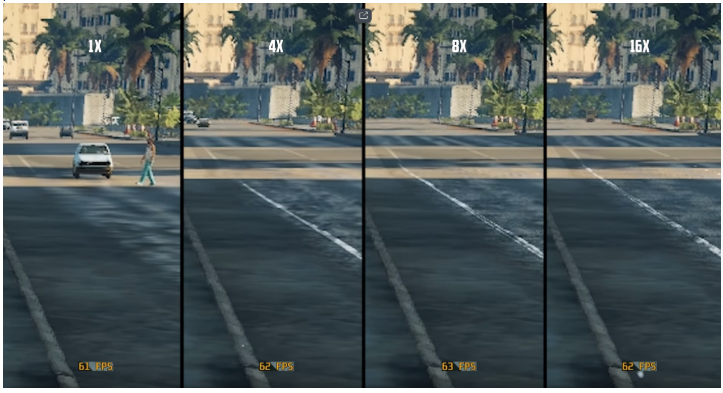 - Анизотропная фильтрация. Игра поддерживает 4 параметра для этой функции: 1, 4, 8 и 16. После изменения настроек некоторая разница появляется, но не настолько ощутима, чтобы был смысл использовать параметр;