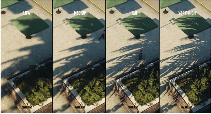 - Качество теней. Данная настройка работает крайне чётко. С каждым повышением уровня тень становится чётче и чётче. Если на минимальных настройках – это бесформенный контур, то на максимальных – контур идеально вырисован;