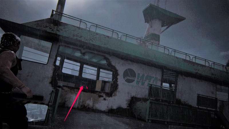 Пройдя Вражескую территорию и Лес, вы доберетесь до Пляжа. После небольшого заплыва вы попадете на корабль. Взберитесь на верхнюю палубу корабля и пройдите за знак «Passenger Assembly Area». Вы попадете в длинный коридор, где вы сможете найти арбалет и пару-тройку зараженных. Убейте зараженных бедолаг, а затем пройдите в конец коридора, чтобы найти письмо под логотипом «Washington Transit Authority». Артефакт «Mutiny Note» содержит комбинацию 90-77-01.