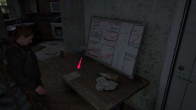 Пройдите дальше кухни, чтобы найти записку «Neighbor Exchange» на столе с белой доской. В этой записке будет содержаться подсказка по поводу комбинации для сейфа в этой локации. Если вы так и не догадались, комбинация — 30-23-04.