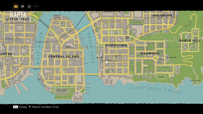 В секторе Даунтаун есть участок под названием Набережная. По прибытии вы увидите серое здание справа от прибрежного магазина West & Sons. За дверью будут деревянные ящики, которые нужно будет разрушить, чтобы добраться до конца гаража, где стоит машина. Выбраться из гаража можно через дверь, для этого потяните за рычаги: центральный, левый, а потом правый.