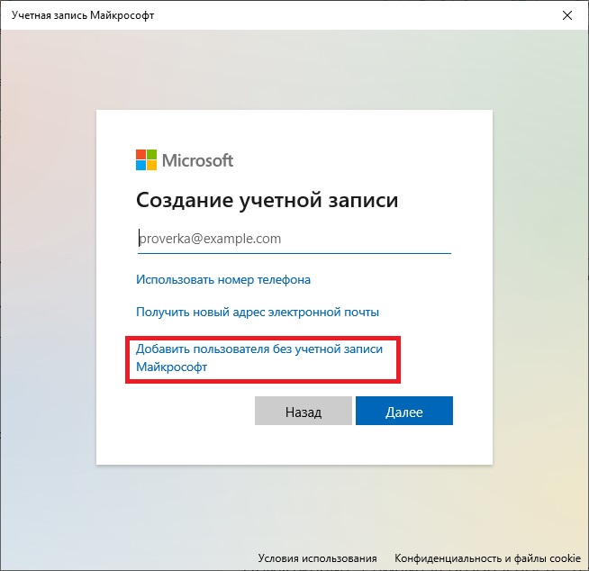 - в новом окошко нажмите «У меня нет данных для входа этого человека», потом — «Добавить пользователя без учетной записи Майкрософт»;