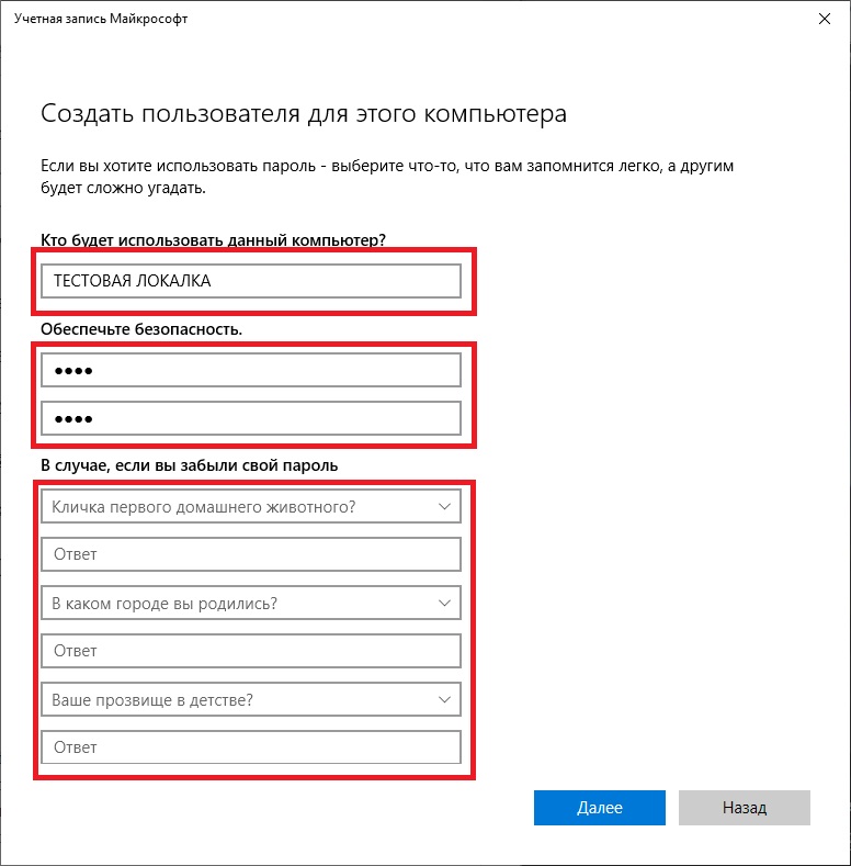 - установите нужные вам имя пользователя, пароль и контрольные вопросы;