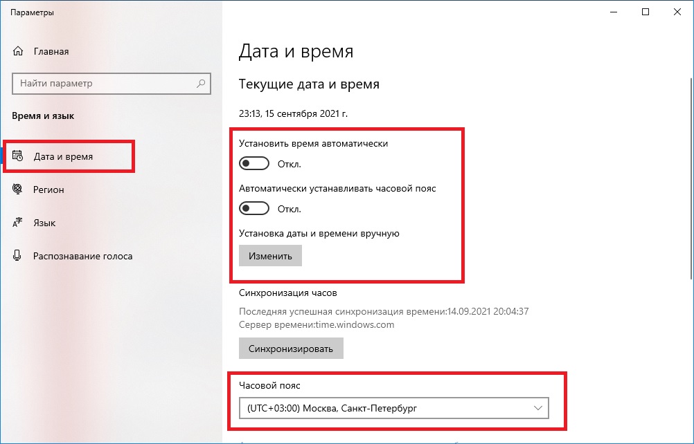 - активируйте опции «Установить время автоматически» и «Автоматически устанавливать часовой пояс»;