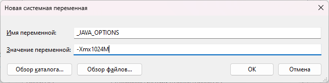- В поле «Значение переменной» введите «-Xmx1024M».