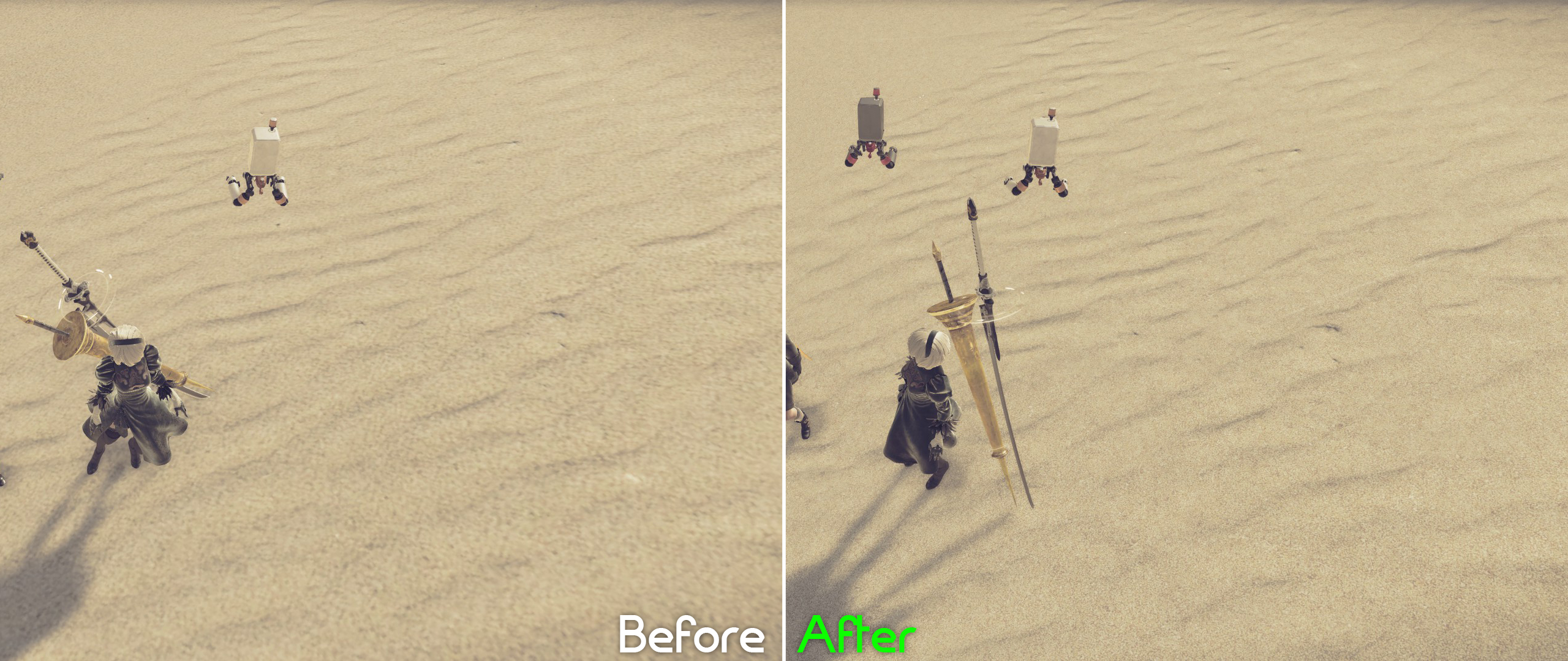 Как уже утверждалось, NieR: Automata страдает от множества текстур с низким разрешением. К счастью, это может измениться в ближайшем будущем, так как теперь в пользователь Steam «GPUnity» работает над первым пакетом HD текстур. И хотя этот пакет все еще находится в альфа-стадии, GPUnity выпустил его версию публично.