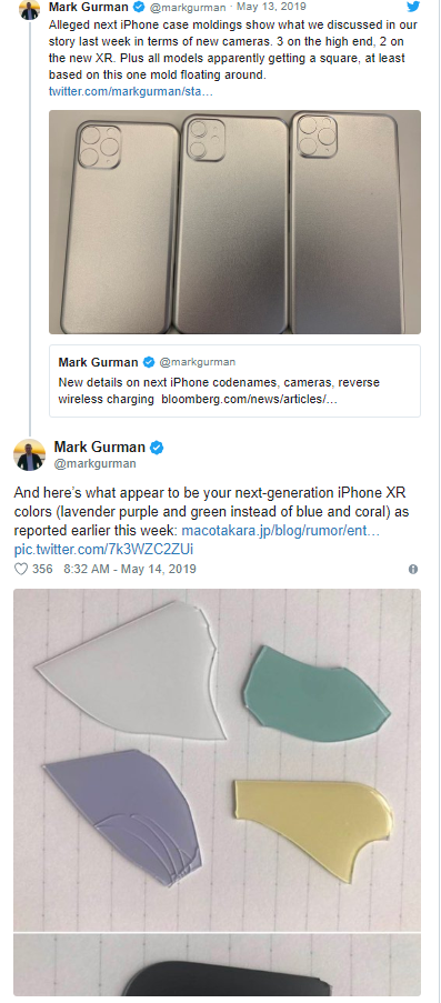 Кстати, один из источников предыдущих картинок в своём посте писал о выходе трёх новых моделей. Они станут последователями iPhone XS, XS Max и XR. Видимо, предположение по поводу iPhone 11, 11 Max и 11R всё же верно.