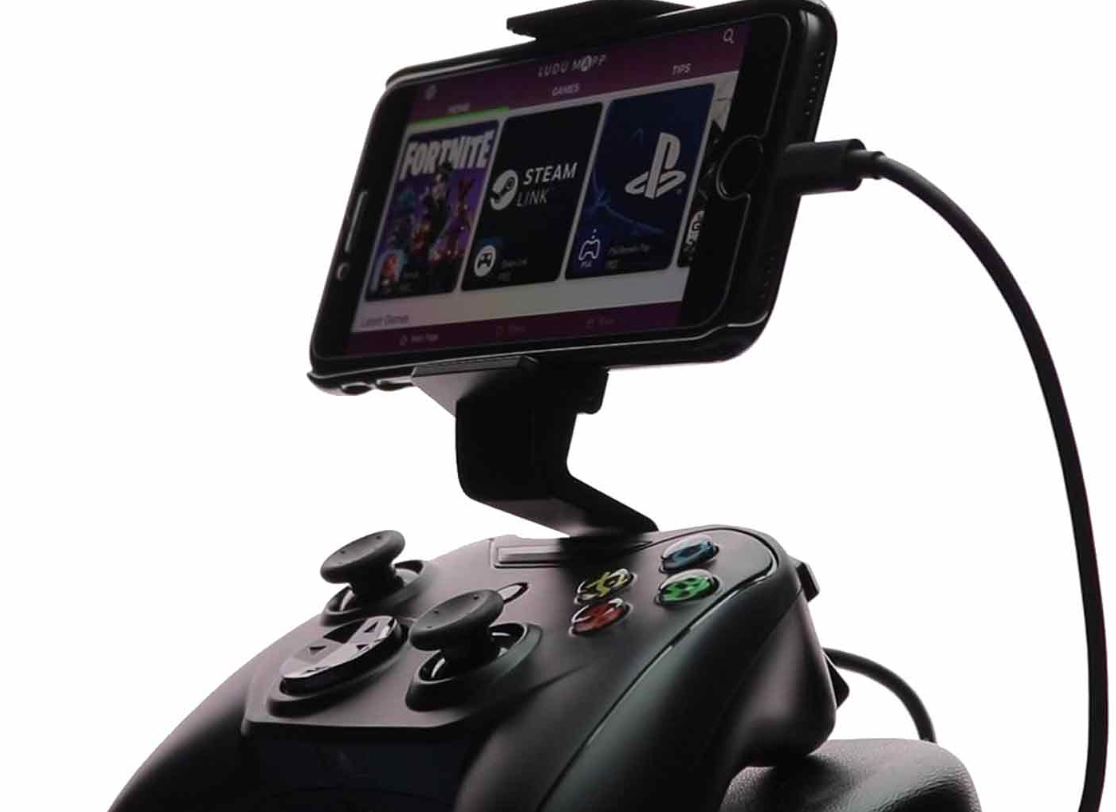 Лучшая модель из современного ассортимента — Rotor Riot. Он имеет удобные и приятные на ощупь аналоговые джойстики. Пусть геймпад и проводной, но у него есть удобный держатель для iPhone, который прикручивается сверху. Правда, доступен только вариант фиксации в альбомной ориентации. Стабильная связь без задержек и лагов с данной моделью гарантирована. Наличие провода говорит о том, что не нужно беспокоиться о смене батареек или зарядке устройства.