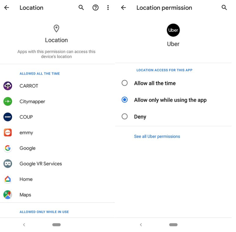 Раньше было 2 варианта: полный запрет отслеживания геолокации устройства и разрешение доступа к GPS. Сейчас появился третий параметр – позволить приложениям запросить данные о расположении только во время их использования. Если какая-то из неактивных программ пытается узнать местоположение, система будет отображать предупреждение. Это решение позволяет лучше понимать, действительно ли приложению нужно знать текущую позицию смартфона.