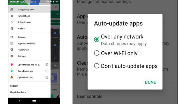 Для выполнения данного действия на Android: откройте Google Play Store, перейдите в «настройки», затем выберите «Авто обновление приложений» и выберите «Не обновлять приложения». Изначально Android не предоставляет разрешение отключения автоматической загрузки обновлений, но некоторые пользовательские накладки ОС, такие как EMUI от Huawei, позволяют это сделать. Чтобы узнать разрешения ОС вашего телефона, перейдите в настройки и найдите «Обновить» в строке поиска.