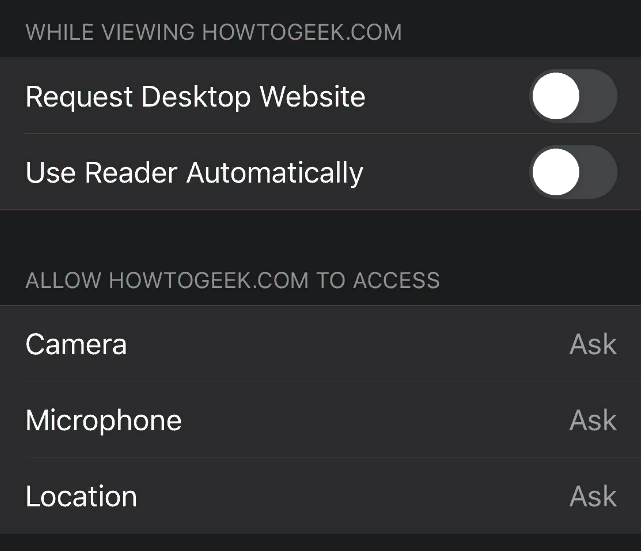 Ещё здесь доступна опция «Настройки веб-сайта». После касания по ней появляется возможность настроить поведение по умолчанию для большинства порталов. Две основные опции: всегда переходить к полной версии веб-сайта и автоматически активировать режим чтения, если это возможно.